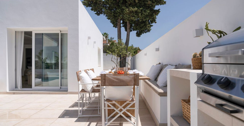 Step into Casa Joline, a fully renovated single-level villa that perfectly captures the essence of modern Mediterranean living in the heart of Nueva Andalucía. This 4-bedroom, 3-bathroom home, completed in 2023, has been meticulously crafted using high-quality materials such as wood, ceramic, and marble, and comes elegantly furnished with custom-made pieces. The kitchen is fitted with reliable Bosch appliances, combining style and functionality.