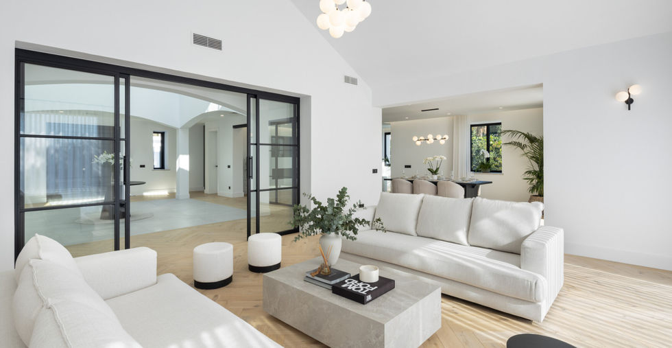This modern villa spans three levels, featuring an open-plan design with five bedrooms, each with its own en-suite bathroom, for a total of seven bathrooms. At its centre lies the “Andaluz Patio”, an impressive glass-roofed atrium with a remote-controlled retractable ceiling that floods the home with natural light. The property also includes two elegant living rooms, a formal dining area, a top-of-the-line kitchen equipped with Gaggenau appliances, an office, and a ground-floor gymnasium fitted with Technogym equipment.