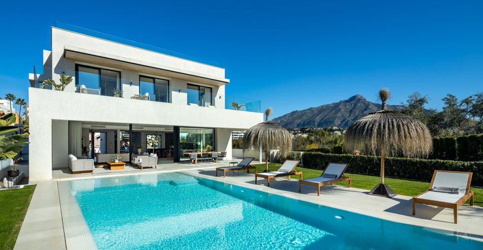 Cerquilla 54B is a contemporary villa located in the prestigious residential enclave of La Cerquilla, offering an exceptional combination of luxury and convenience. Nestled in Marbella’s highly sought-after Golf Valley, the property enjoys captivating sea and mountain views, all while being just minutes from key amenities. The villa’s modern architectural design maximises natural light, with floor-to-ceiling glass sliding doors that create a seamless connection between the indoor and outdoor living spaces. The open-plan layout enhances both functionality and elegance, featuring a sleek modern kitchen with a central marble island and state-of-the-art integrated appliances.