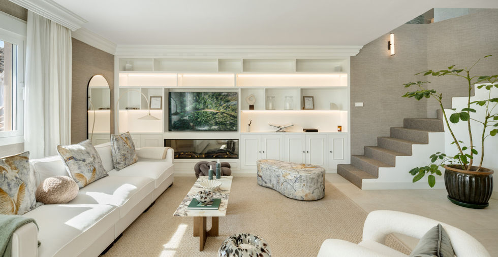 Located in the highly sought-after Marbella Golden Mile, Costa PH is an exceptional duplex penthouse that offers breathtaking panoramic views of both the sea and the mountains. Designed with a modern open-plan layout, the living, dining, and kitchen areas flow seamlessly together, creating a bright and spacious ambiance. The state-of-the-art kitchen features a striking marble island, elegant wooden cabinetry, and high-end integrated appliances, complemented by a stylish wine rack that adds a touch of sophistication.