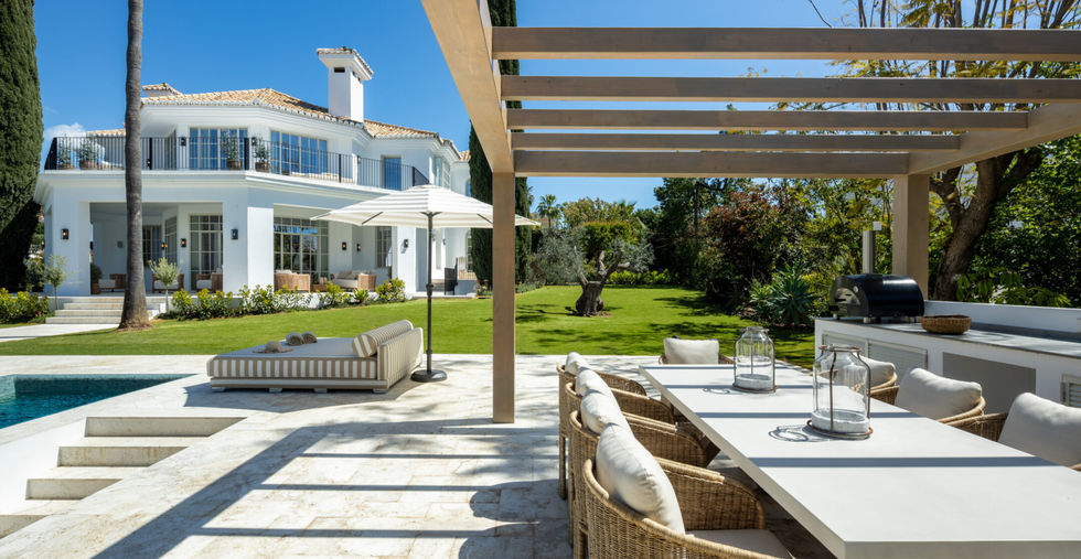 Welcome to Villa Karina, a magnificent five-bedroom luxury residence nestled in the heart of Nueva Andalucía, offering the perfect balance of elegance, comfort, and prime location. Set on an expansive 1,959 m² plot with a built area of 722 m², this stunning villa embodies the essence of sophisticated Mediterranean living. From the moment you arrive, the striking white façade, beautifully landscaped gardens, and impressive driveway set the tone for the exceptional quality and design that define this remarkable property.