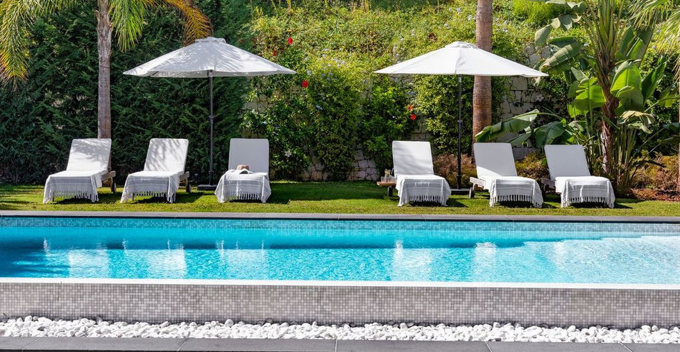 Outdoors, Villa Gardenias impresses with an expansive garden and a heated saltwater pool surrounded by mature palms and lush hedges that ensure complete privacy. The rooftop terrace is a true highlight, featuring an outdoor kitchen and a jacuzzi, the perfect space for entertaining or simply enjoying Marbella’s endless sunshine.